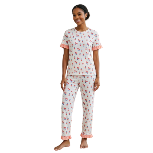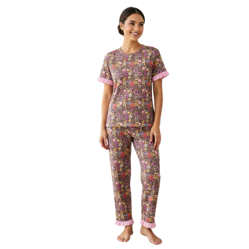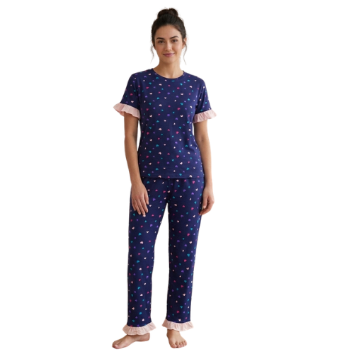 Ladies Frill Pj Set Half Sleeve