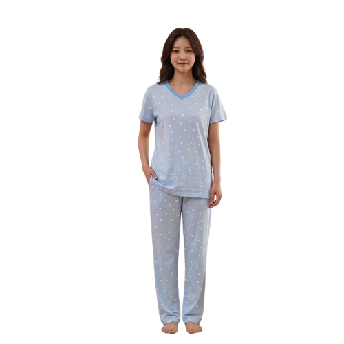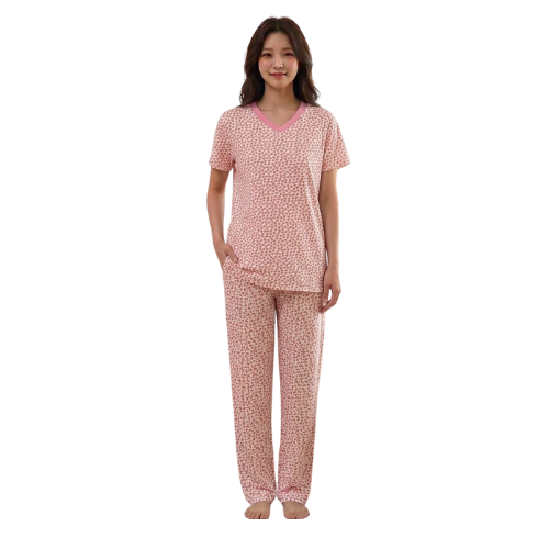 Ladies V-neck Semi-long Pj Set Half Sleeve