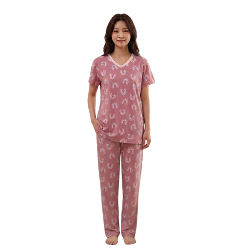 Unwind in effortless style with this chic pajama set, featuring a breezy short-sleeved top and comfortable semilong pants. Crafted from soft, breathable fabric with a playful all-over print, it’s perfect for cozy nights, lazy mornings, or lounging in comfort while still looking put-together.